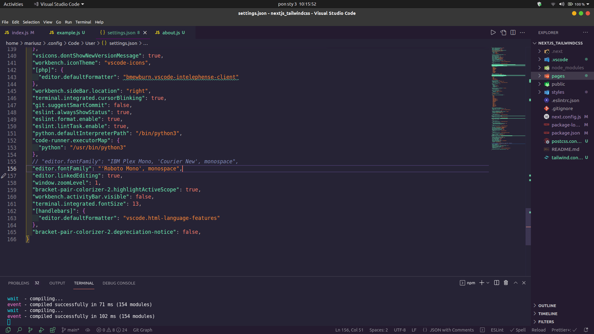 "editor.fontFamily": "'Roboto Mono', monospace",