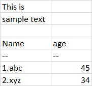 sample_text: 'This is \nsample text\n\nName|age\n--|--\n1.abc|45\n2.xyz|34'