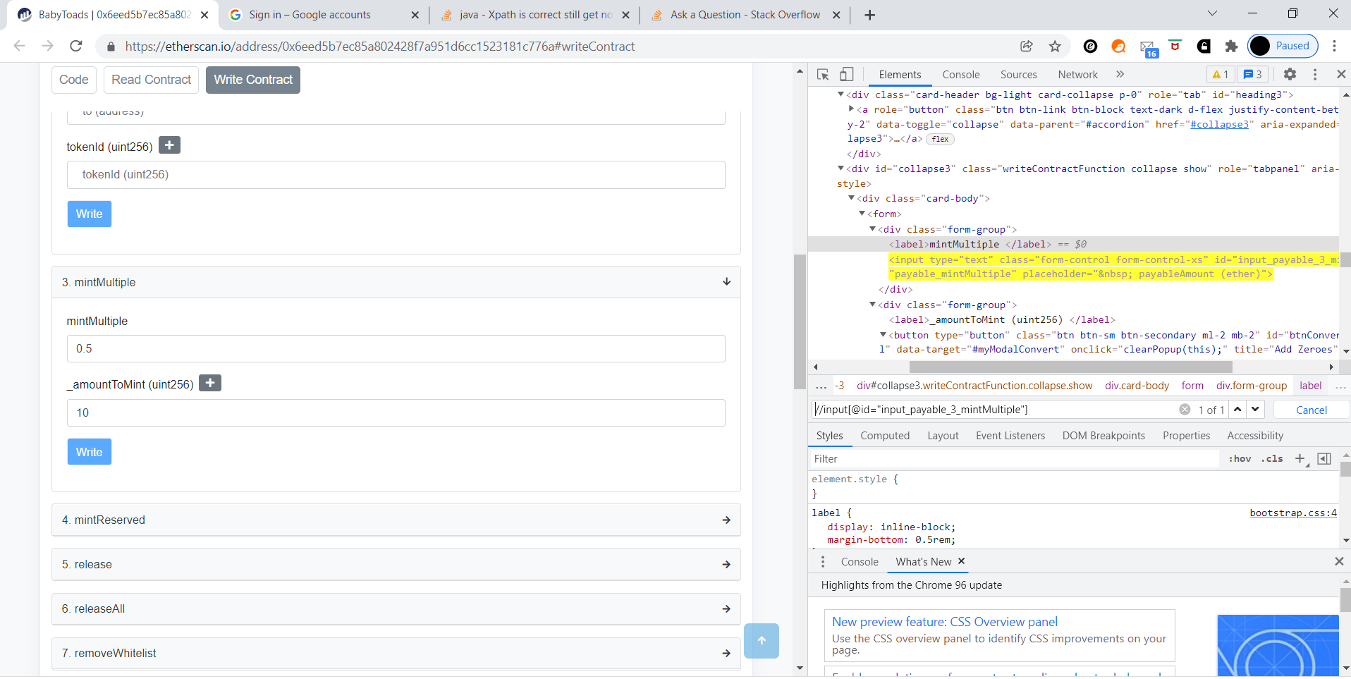 NoSuchElementException: no such element: Unable to locate element: {"method":"xpath","selector":"//input[@id="input_payable_3_mintMultiple"]"}