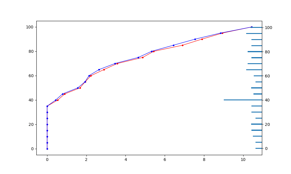 ax1.plot(data["series2"], data['levels'], linewidth=1, c='b', marker='o', markersize=3)