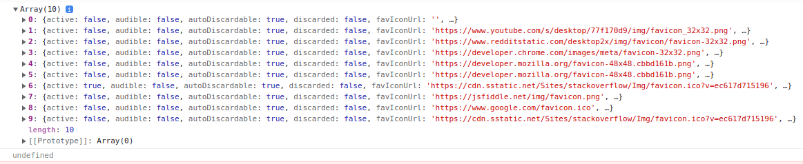 However, it is better to actually return the array from the getCurrentTabs function than to add to a global array.
