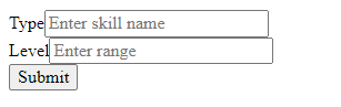 So,to be clear.I have a skill component where i have 2 input forms and a button,i need to retrieve data from both inputs,and then,when they are being submited,to be fetched and saved in persistor. Till now everything is good,i introduce data,the post request is successeful,but,the payload is only with the id that mirage js generates automatically.But i need to have an array with Type,Range props and with their values,and everytime i click on the button the array of this objects should be populated.