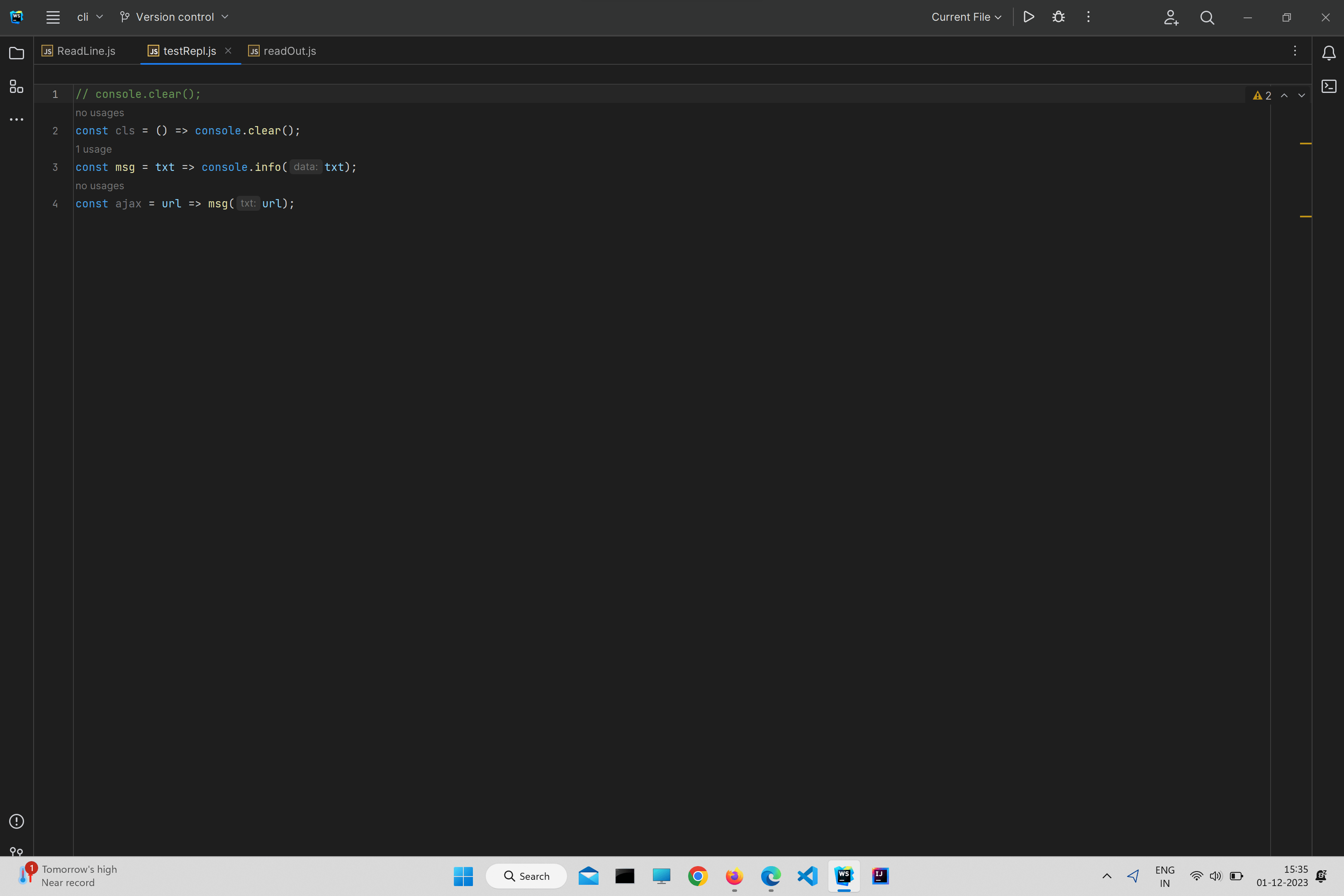 This is the code exactly in my testRepl.js: