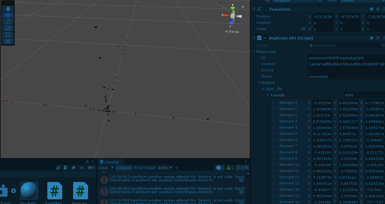 I’m using Replicate API to try and get a point cloud in Unity, I finally go the API returning a JSON file, and I’m pretty certain it’s returning vector3s of the positions of each point. Yet, when i cast it to a vector3 the values get all out of whack, every number will be like, 6.852349e-43, and even some "NaN"s, when on the API they appear to be all values below 0.