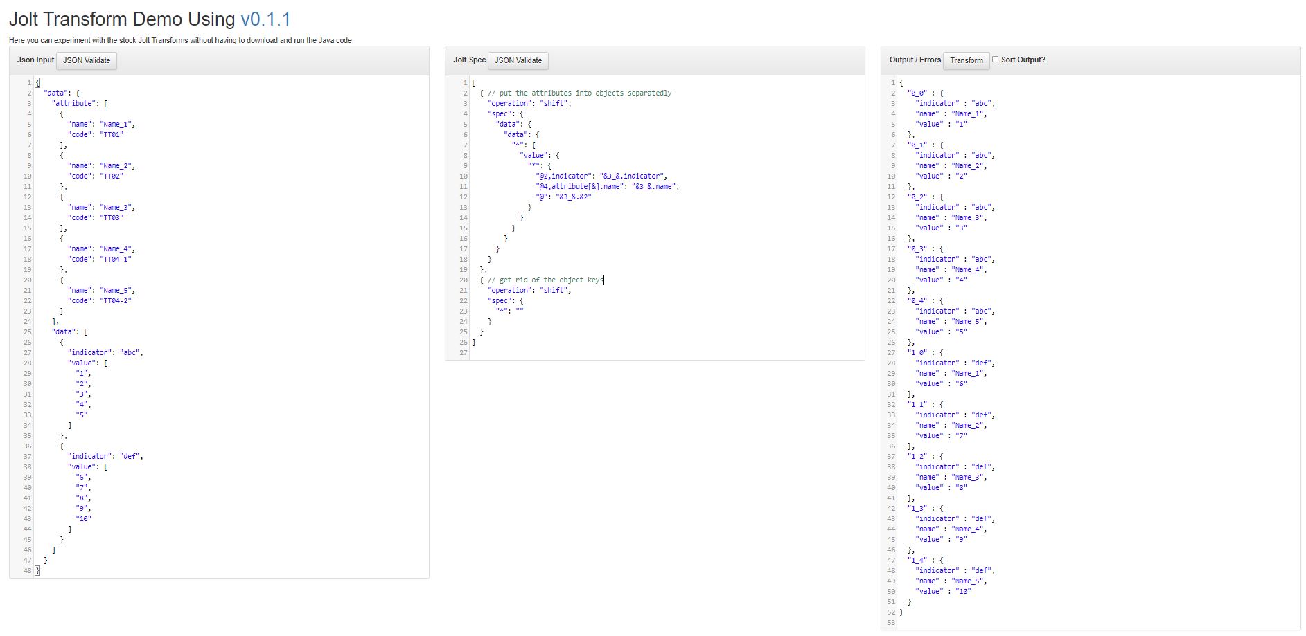 { "indicator": "abc", "name": "Name_1", "value": "1" },