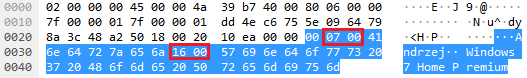 As you see, the length indication bytes where htons() is used are all zeros, where they should be 00 07 and 00 16 respectively.
