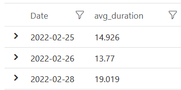 To illustrate what I seek, here is a query that computes daily averages of the duration column.