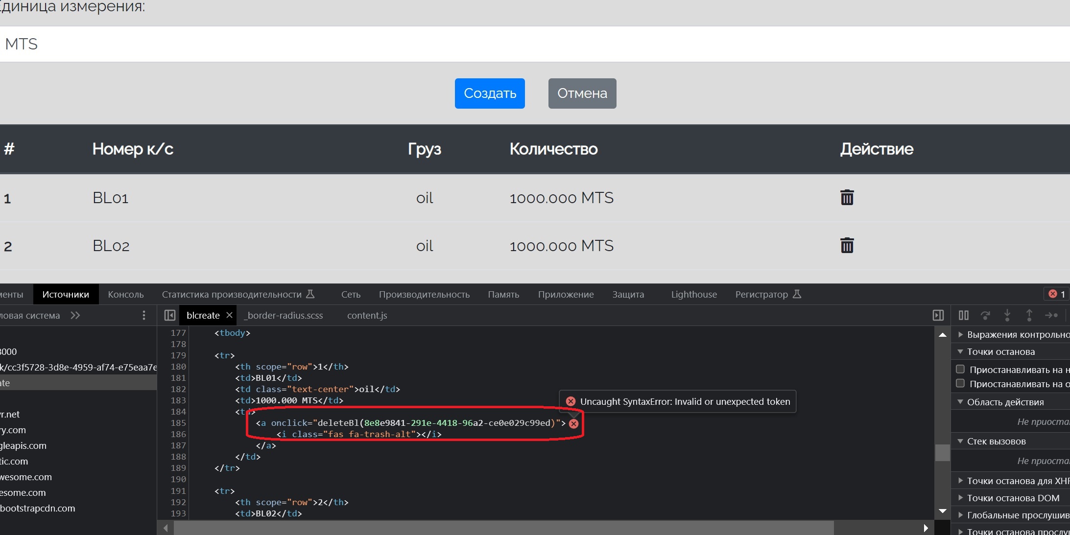 There are no any console errors if I use default Id as primary key. But I need to use UUID as a primary key and in that case I get an error: "Uncaught SyntaxError: Invalid or unexpected token":