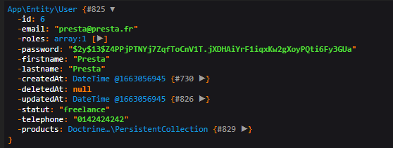 I try to display the products created by the logged in user. By default, all products are displayed regardless of the author.