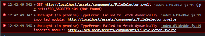 I have this svelte project where I implemented dynamic imports for the components FileSelector.svelte and TableViewer.svelte. Locally it works but when i build it and put it into an nginx webserver it still tries to fetch the components from the components directory which doesn’t exist in the build dist-directory.