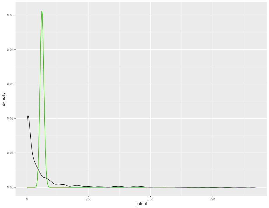 geom_density(data = PatentsRD, aes(x = patent))