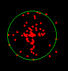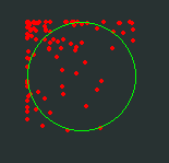 For people not familiar with pygame, green circle is of radius 50 and is drawn at (300, 300) and the red circles are drawn at (p[0] + 300, p[1] + 300)