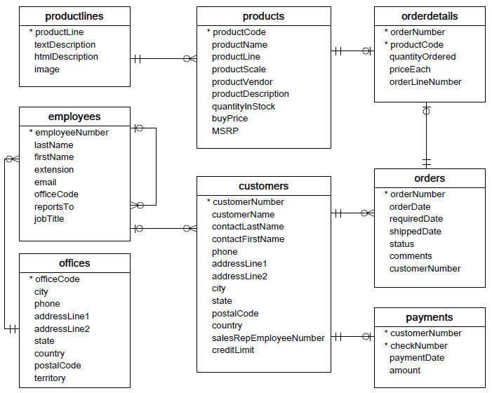 I use the classicmodels sample database from mysqltutorial.org: