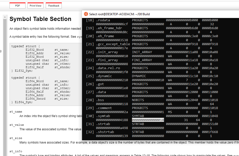 It should be noted that the ELF file i run readelf on, in the above picture, is a 64bit executable