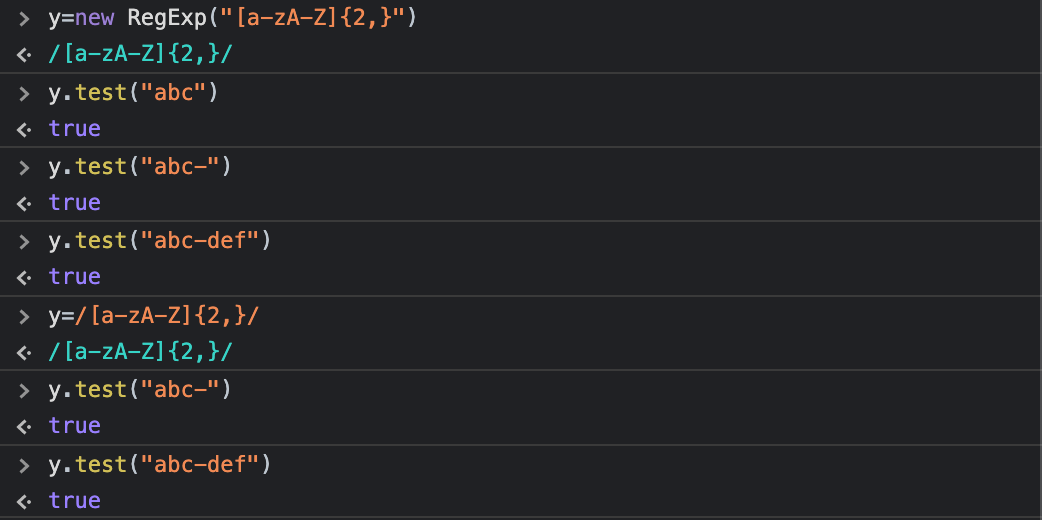 Can someone tell me what am I missing? Ideally I would want to pass regexString in a utility function rather than using /.