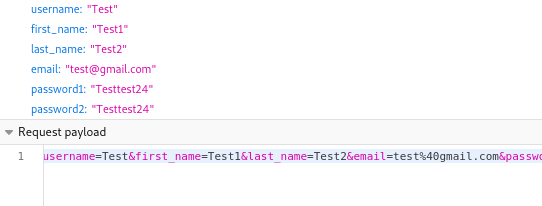 csrfmiddlewaretoken=XXXXXXXXX&username=Test&first_name=Test1&last_name=Test2&email=test%40gmail.com&password1=Testtest24&password2=Testtest24