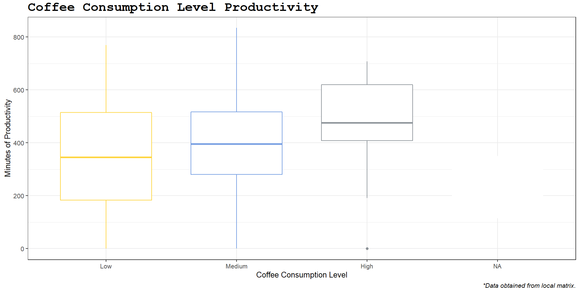 I looked and those values correspond to my coffee consumption equaling zero, yet I already set the cut from 0 to 9. Naturally, when I try to make a boxplot with this, the NA levels get included, which I don’t want: