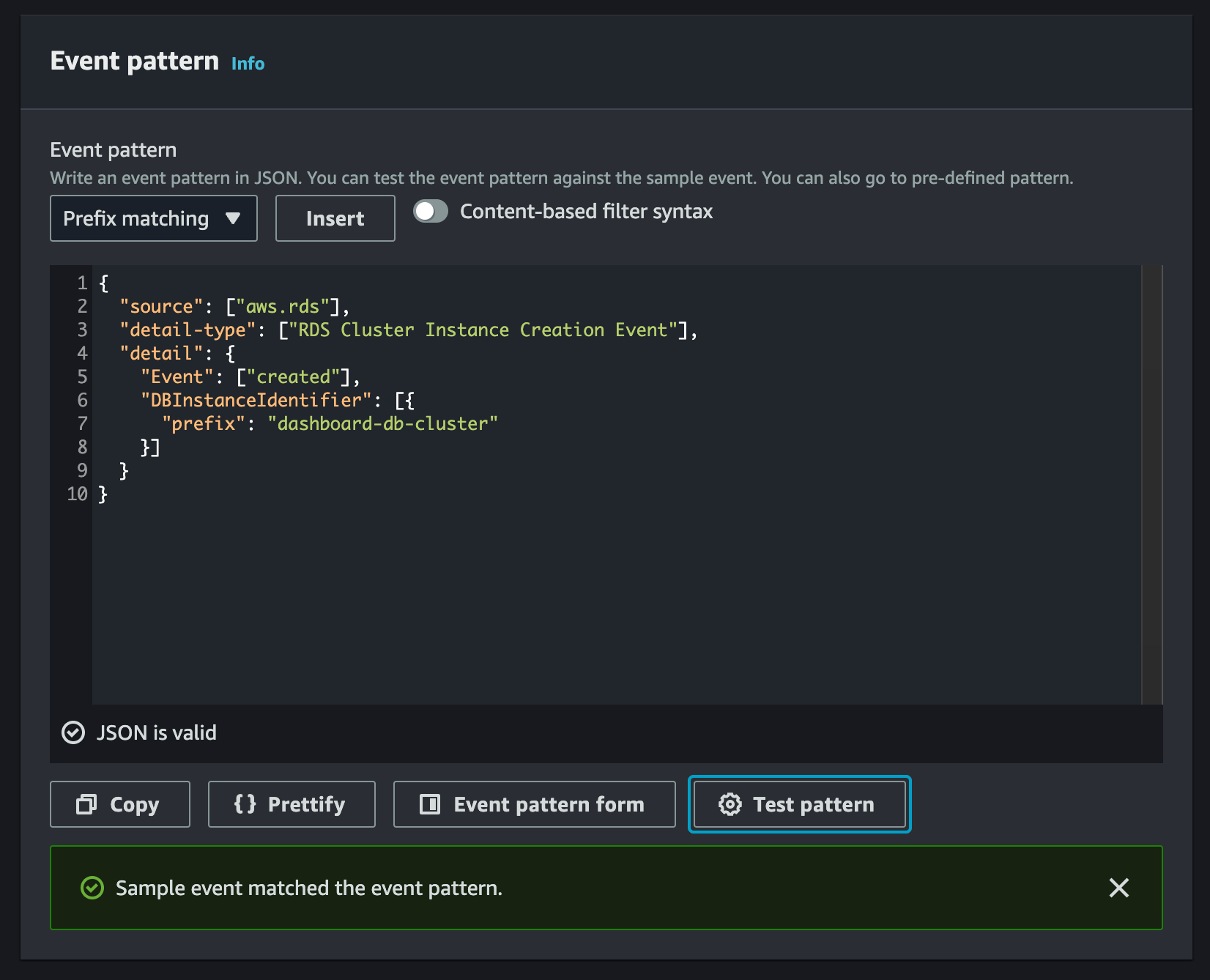 This is my Rule’s Event Pattern that I’m trying to trigger: