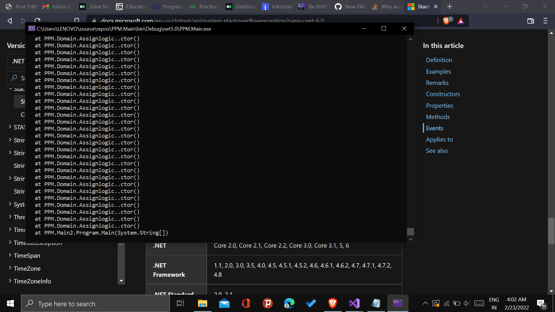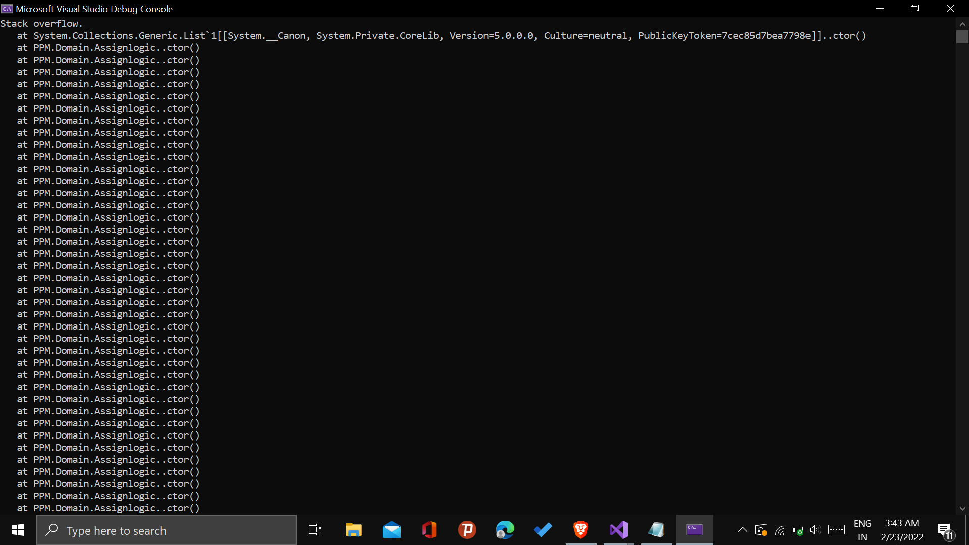 //System.StackOverflowException: 'Exception of type 'System.StackOverflowException' was thrown.'