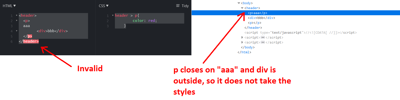 You can see it yourself in the browser console. Also some tools will point you that this is not a valid arrangement of DOM elements.