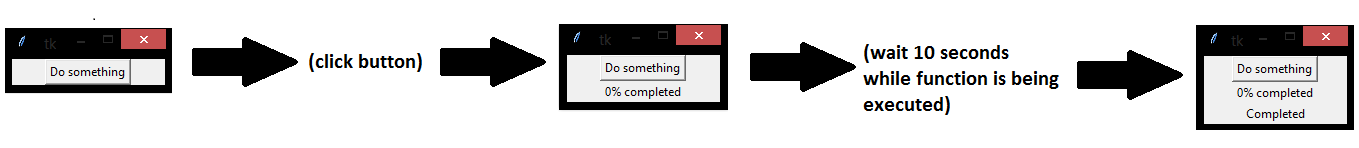 and surprisingly for me, it works exactly like I wanted. After I input 'yes', it prints '0% completed' inmediatly, and after waiting 10 seconds, it prints 'Completed', so how can I get the same thing to work in tkinter?