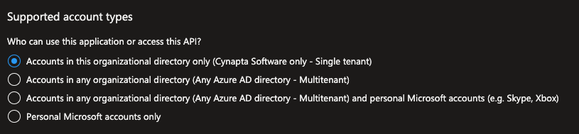 When you register an application in Azure AD, you are asked to choose the account types that can use the application.