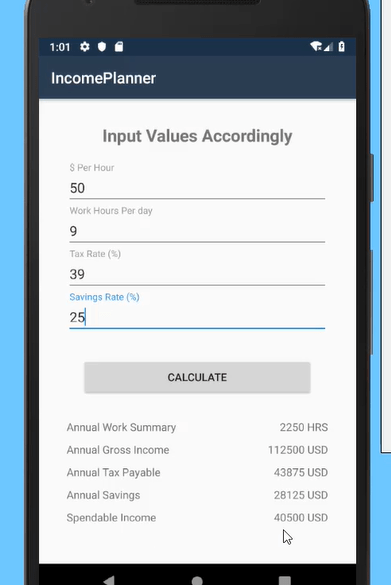I’m having issues with a practice side project I am making within Android(Xamarin). Its a annual income side project and I simply have a "Calculate" button. Below is the method code to connect the data points within xml code and it has the calculateButton.Click event handler.