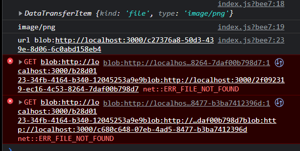 It looks like: blob:http://localhost:3000/oi4fr-...blob:http://localhost:3000/b340-1204....