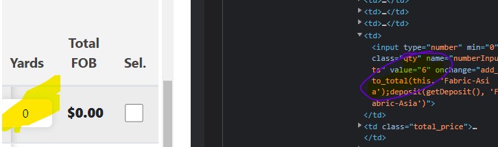 (j == 9) ? `<td><input type="number" min="0" class="qty" name="numberInputs" value='` + ar[i][j] + `' onchange="add_to_total(this, 'Fabric-Asia');deposit(getDeposit(), 'Fabric-Asia')"></td>` :