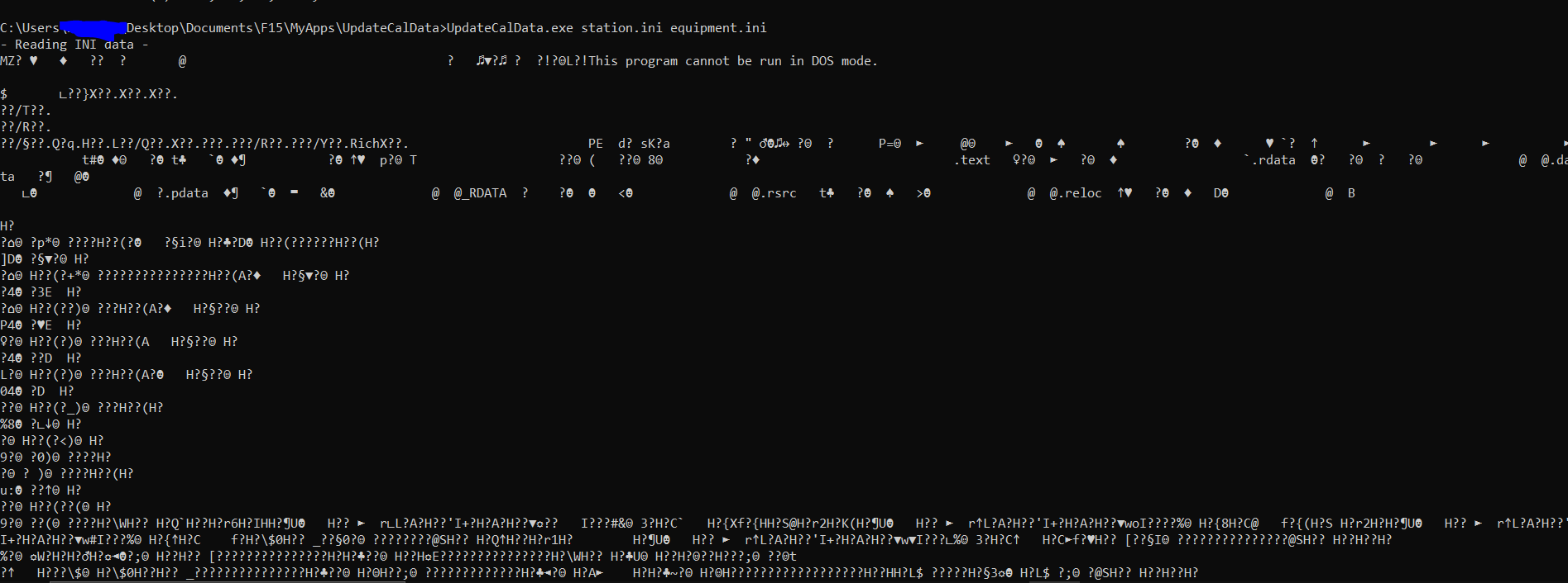 In .NET Core 5 console apps I had no problem running compiled executables with arguments through the CLI. But when I published my code and ran it through the command line I got the following output (see output) with the strange line "program cannot run in DOS mode". Interestingly enough, it still reads one of ini files, but when I run through powershell it reads the other ini. This is very strange behavior to me. Should I just downgrade back to .NET Core 5 or try and understand what’s happening? Is it the fact that I am reading INI’s ? (unfortunately I have no choice as its a legacy project). Any help is appreciated.