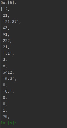 Out[5]: [12, 43, 12.145, 546, 23, 76, 5.54, 231.1, 32, 235, 1.12, 12, 124, 1.12]