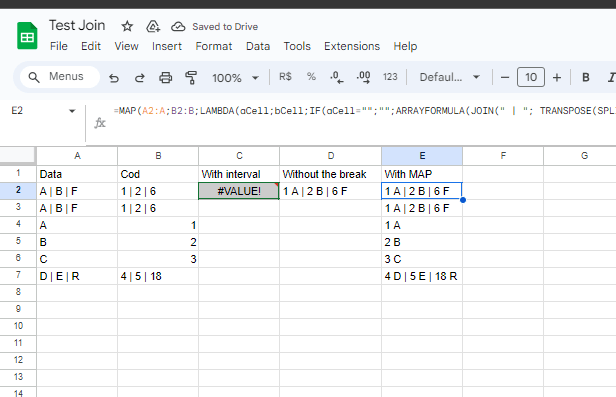 | A | B | F | 1 | 2 | 6 | #VALUE! | 1 A | 2 B | 6 F |