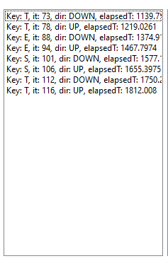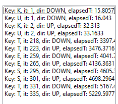private void LogOutputData(Keys key, int iteration, bool isKeyUpEvent, double elapsedTime)