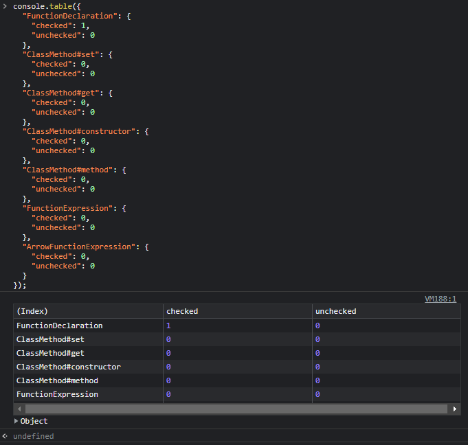 I have a very simple object, but the table is just never printed fully in Chrome devtools: