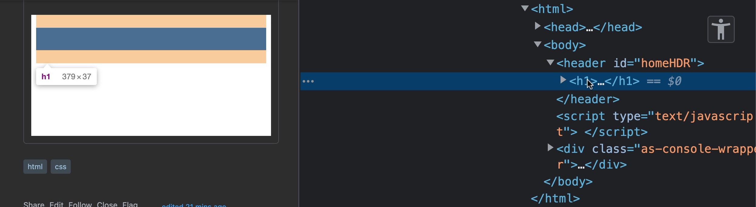 Be careful though. You might only want to reset the margin for the h1 tag that’s inside the header to get rid of the ugly border at the top, but not other h1 tags found inside the page (even though that’s discouraged). So maybe, you want to have a more specific selector for that h1, e.g. #homeHDR h1 { margin: 0; }.
