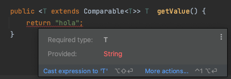 return (T) something;. This generates a warning, because, the compiler has no idea. It’s just going by your word that things will work out. If they don’t, and why should they, you end up withClassCastExceptionerrors on lines that have no casts in them. Bad idea – confusing code is bad, confusing errors are worse.