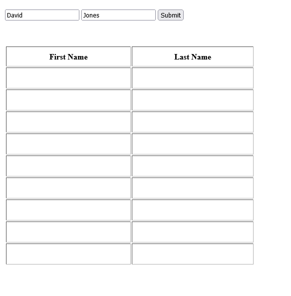I’m making a Dynamic HTML table using JavaScript, to which you can add first and last names. But when I click on the submit button, it creates empty cells without an input field value.