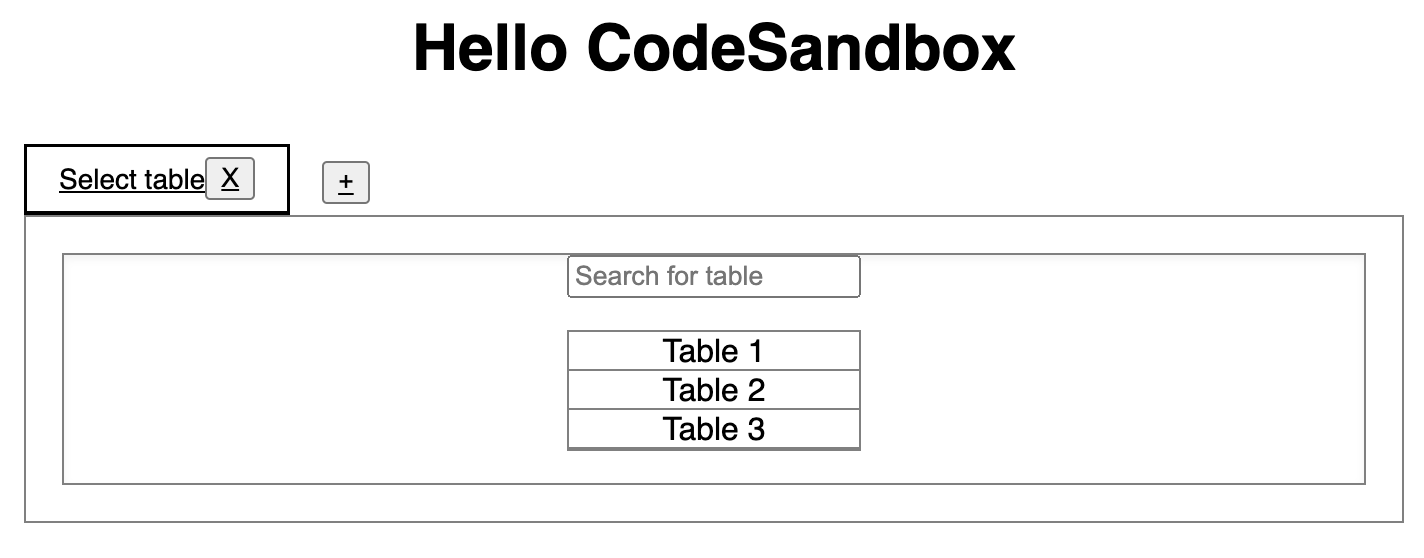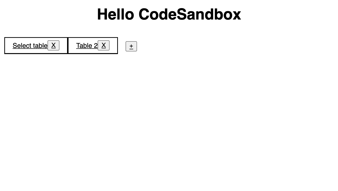 In this example I am rendering few tabs. A new tab initially presents a list of DB "table" names (which is fixed for this demo). On selecting the table name, the list is replaced by table’s content.
