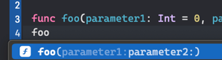 If the function has some required parameters, and some optional parameters, you can see that the required ones are in white, and the optional ones are in grey.